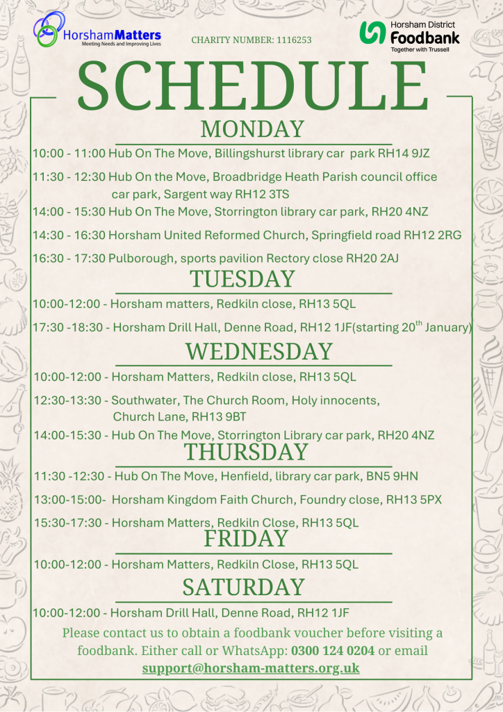 Horsham Matters is a Christian charity that aims to demonstrate love of our neighbour by relieving hardship through the provision of essential services in order to make a positive, long-lasting impact on people’s lives.